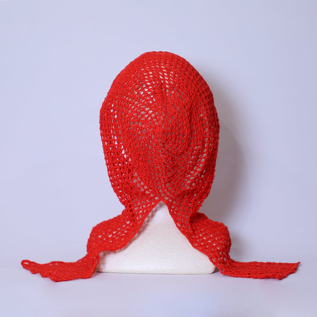 透け感たっぷりの編み方で仕上げた、軽やかなヘッドドレス。