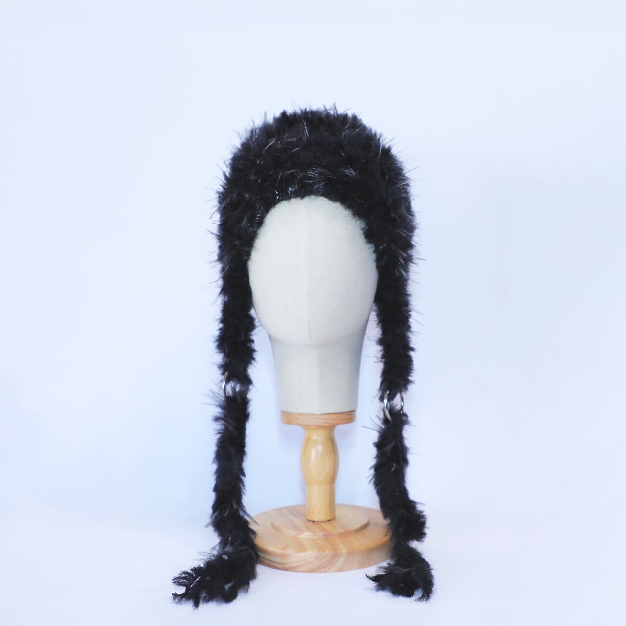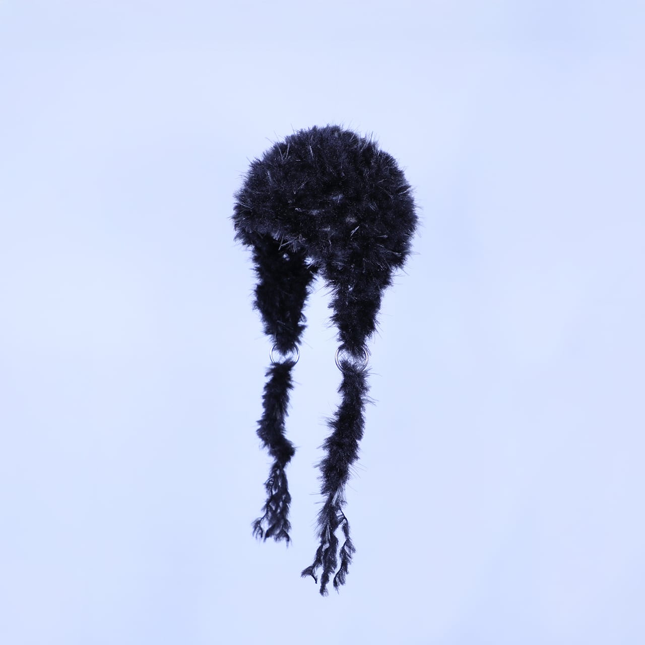 黒のファーの中に、ところどころ混ざる明るい色のファーヤーンが動きや光によって表情を変えます。