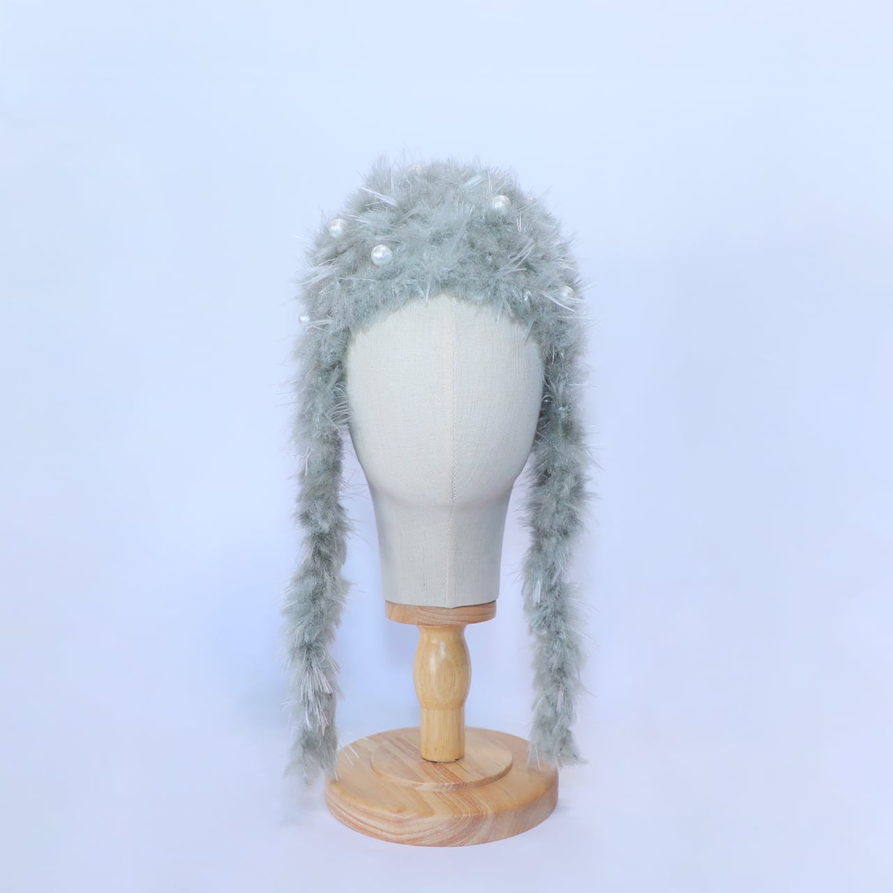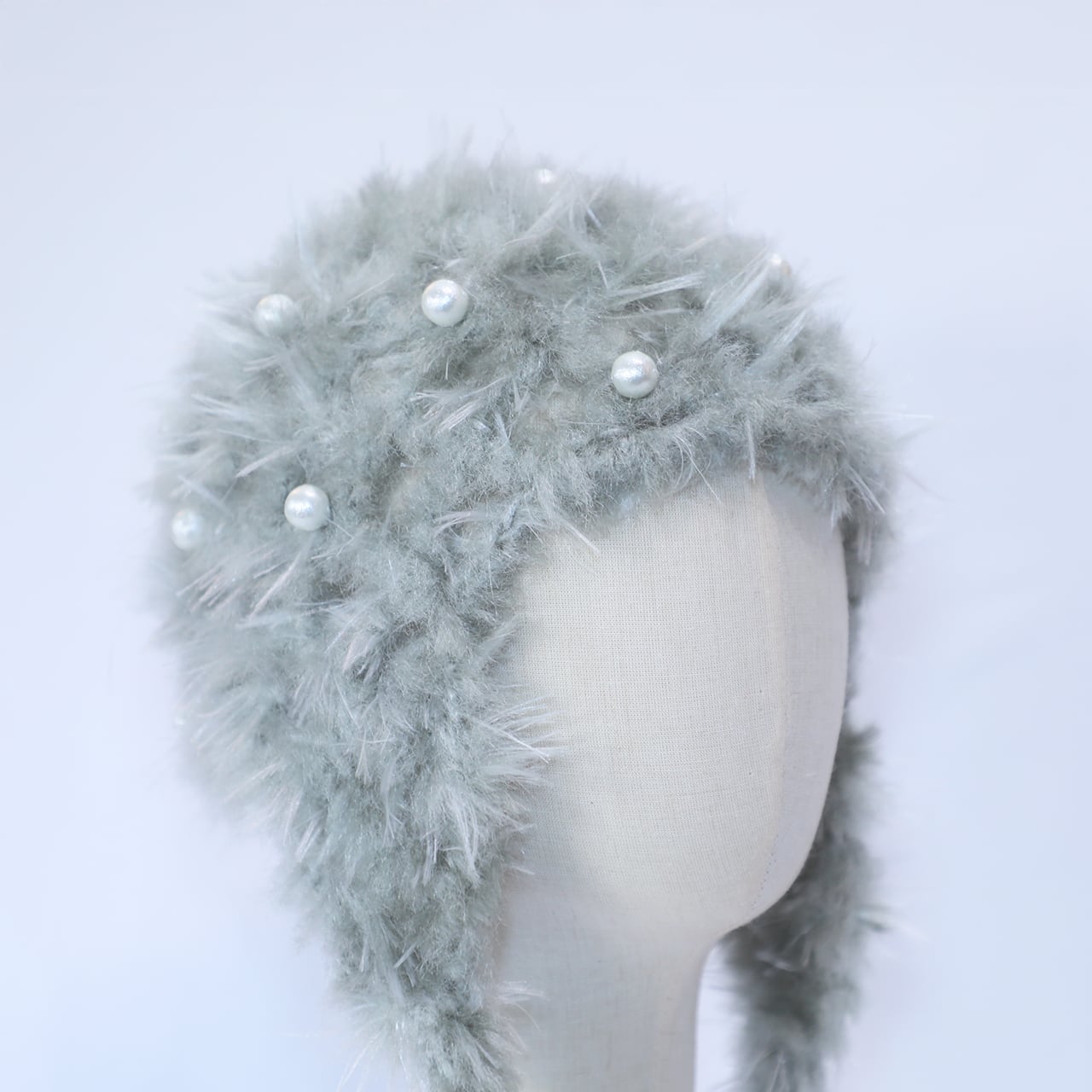 やさしいシルバーカラーのファーの中に、パールを散りばめて、